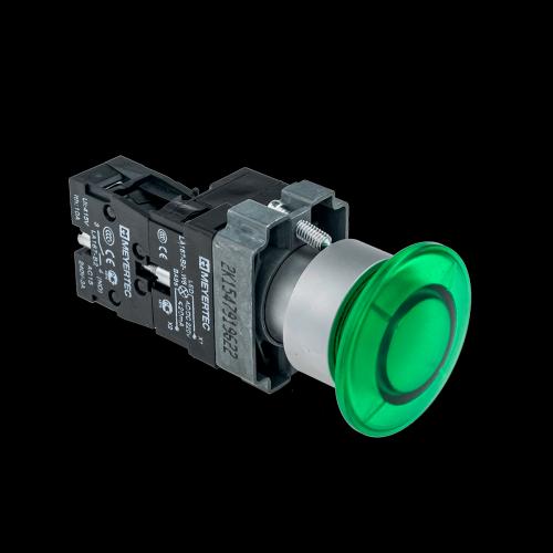 MTB2-BW3613 кнопка грибовидная с LED подсветкой без фиксации,24V AC/DC, 1NO, зеленый,d40мм